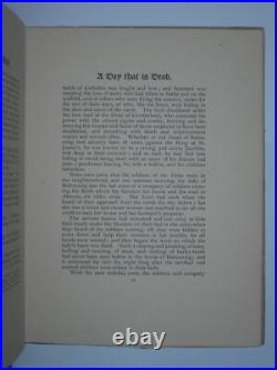 A Day That Is Dead by the Rev John Stirton, B. Printed by W Shepherd, Forfar in 1913. Inscribed by author on title-page. Frontispiece and one other plate (as issued). Writing in pen across front cover, marks to covers, two corners rubbed with card visible, rubbing to spine tips, two addresses written in pen on rear end-paper, separation between some gatherings but only very slight movement, some foxing to title-page, minor marks to a few margins.