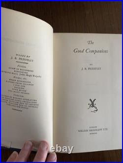 1929 First edition copy of'The Good Companions' by J B Priestley. Octavo, dark blue cloth covered boards titled in gilt on the spine. Faint marks on the boards. The dustjacket is torn and taped. Taped to the front end paper is a typed and signed letter from Priestley, dated 22 February 1944 and written yo Dr Weltman, replying to an inquiry regarding a German translation of the play'Desert Highway.