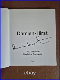 This product is a signed hardback book titled "The Complete Medicine Cabinets" by Damien Hirst. It is a first edition, illustrated book published by L&M Arts.