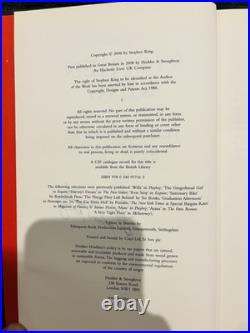 Autograph : Stephen Kings Autograph can be seen on the title page of the book in black ink. Original Book Release Date : 2008. Publication Date of this Copy: 2008. Condition of Book: Very Good. Condition of Dust Jacket: Very Good.Condition of Pages: Very Good. This may not be a US 1.